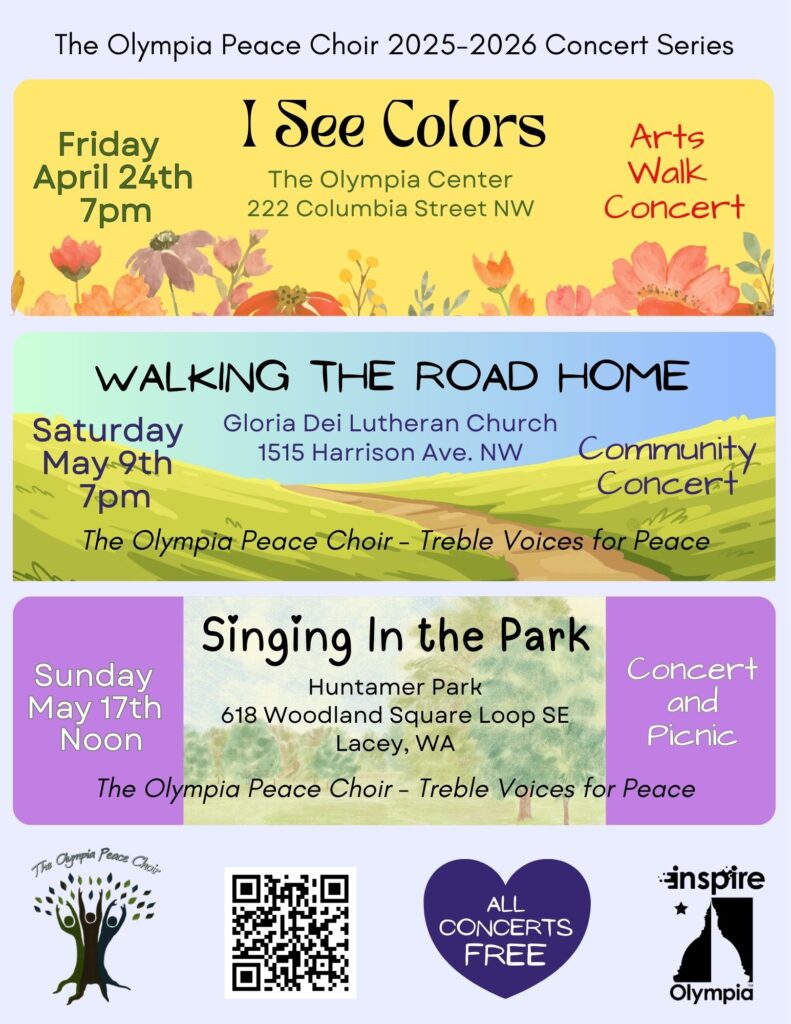 Since our founding we have grown. We now offer two choirs: The Olympia Peace Choir and Treble Voices for Peace.